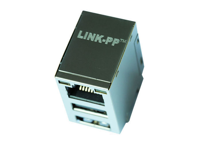 | RJ45 Magjack με 10/100/1000 ενσωματωμένο βάση-τ Magnetics με διπλό USB, οδηγήσεων Orange&Green/Yellow, ετικέττα επάνω, RoHS | |