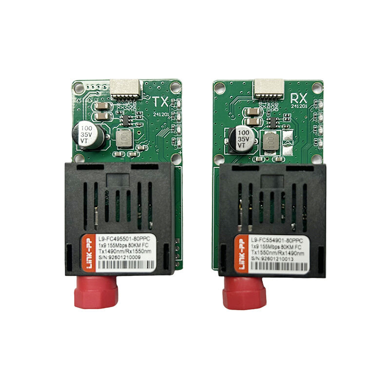L9-FC554901-80PPC is a long-reach 1×9 form-factor optical transceiver designed for 155 Mbps single-fiber bi-directional optical transmission. The module operates at Tx 1550 nm / Rx 1490 nm, supports transmission distances of up to 80 km, and uses an FC optical connector for reliable long-distance single-mode fiber links.